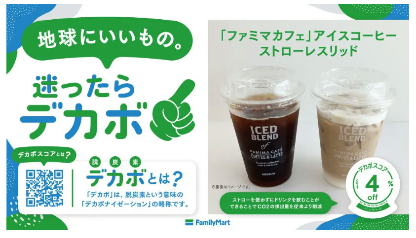 レジ袋の利用を選ぶように、購入する商品を「デカボスコア」対象品から選ぶことで、CO2削減に貢献する取り組みがファミリーマートで行えるようになる。