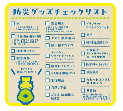 店舗では、何から揃えればよいか分からない人向けに防災グッズチェックリストを用意して「もしも」に備える商品を1カ所で揃えられるよう展開する。。