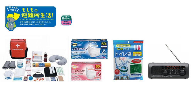イオン北海道(株)(札幌市白石区、青栁英樹社長)は、食料品から衣料品、暮らしの品まで『もしも』に備える防災用品を、道内の「イオン」「イオンスーパーセンター」40店舗で展開する。