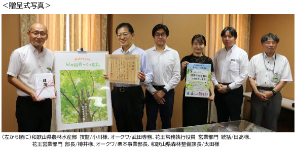 流通スーパーニュース > CSR > オークワnews|和歌山県の森づくりに寄付/花王と協働 オークワnews|和歌山県の森づくりに寄付/花王と協働 CSR / 2025年09月11日 ツイート (株)オークワ(和歌山県和歌山市、大桑弘嗣社長)は和歌山県「紀の国森づくり基金」へ寄付を行った。 花王グループマーケティングと共同で行ったもので、6月の環境月間期間中、オークワ全154店舗において、花王製品を対象に再生プラ・節水商品の売上げ金額の一部40万3708円を寄付した。8月27日(水)、オークワと花王は和歌山県から感謝状を受理した。 ツイート