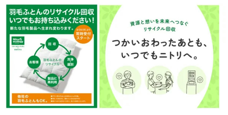 ニトリnews|「ニトリの羽毛布団回収」9/29から全店で常時受付開始