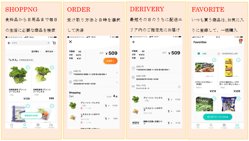 U.S.M.Hオンラインデリバリーは、柏千代田店で扱う商品をスマートフォンアプリで注文して、自宅や配送エリア内の指定先、もしくは店頭で受け取れるサービスだ。