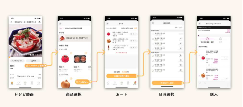 2020年12月にはイオンリテール(株)が、今年1月26日(火)にはイオン東北(株)が、クラシルアプリ内で「おうちでイオン」ネットスーパーを開始している。