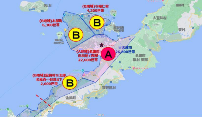 対象エリアは名護市街地をはじめ、本部町、今帰仁村、恩納村北部までで、配送は最大1日 4便体制。12時から21時までの間で希望する時間帯に届ける。入会金は無料だが、地域により400円、あるいは500円(いずれも税抜価格)の配送料金がかかる。
