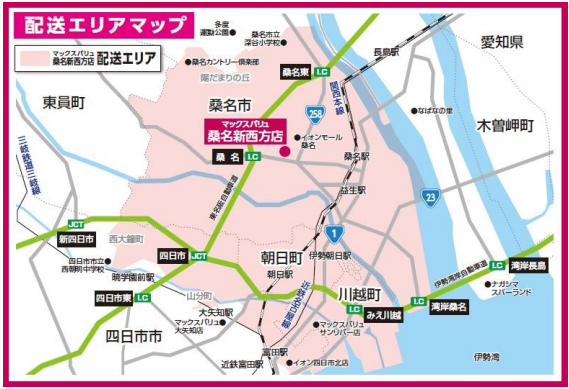 桑名新西方店を配送拠点とするネットスーパーは、桑名市、四日市市、三重郡川越町、三重郡朝日町(一部地域除く)を配送エリアとする。配送可能世帯数は約6万3000世帯。