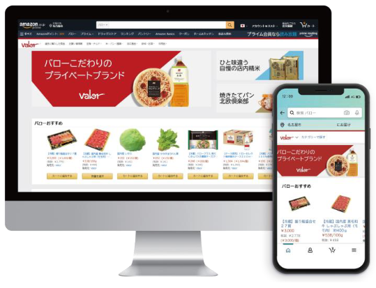 アマゾンのプラットフォーム、すなわちAmazon.co.jpのWebサイトおよびAmazonショッピングアプリ上にバローのストア(www.amazon.co.jp/valor)がオープンするが、ここではバローの実店舗で取り扱っている野菜や果物、精肉、鮮魚をはじめ、店内で精米したての米や惣菜、パン、「valor select」や「valor plus」といったバローのプライベートブランド商品など数千点の商品が扱われる。