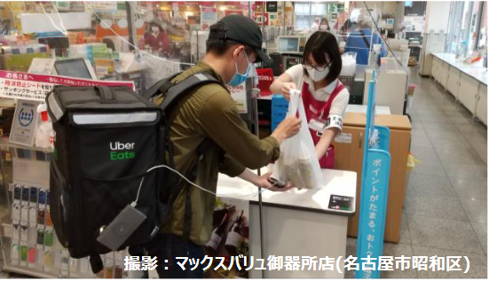 マックスバリュ東海では2020年9 月に器所店(名古屋市昭和区)で、11月にマックスバリュ一社店(名古屋市名東区)でウーバーイーツを試験導入している。導入店舗では当初の想定を上回る需要があることから、静岡県内店舗への初導入となった。