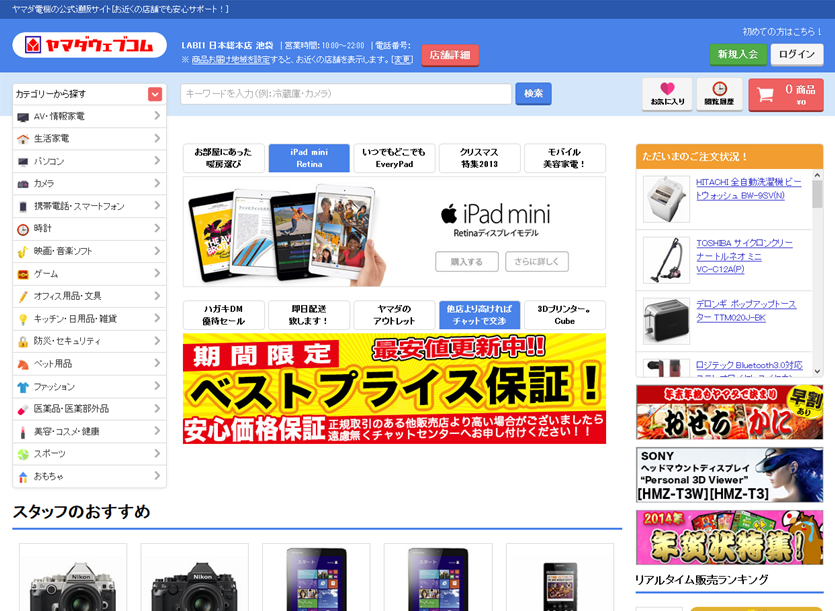 検索キーワード: ヤマダ電機 ヤマダウェブコム ショールーミング