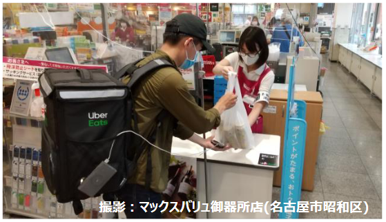 同社では「uber Eats」利用の配達サービスを、2020年から名古屋市にあるマックスバリュ御器所店(昭和区、2020 年9月開始)、マックスバリュ一社店(名東区、2020年11月開始)の2店舗で試験導入していた。導入店では想定を上回る需要が継続しているという。