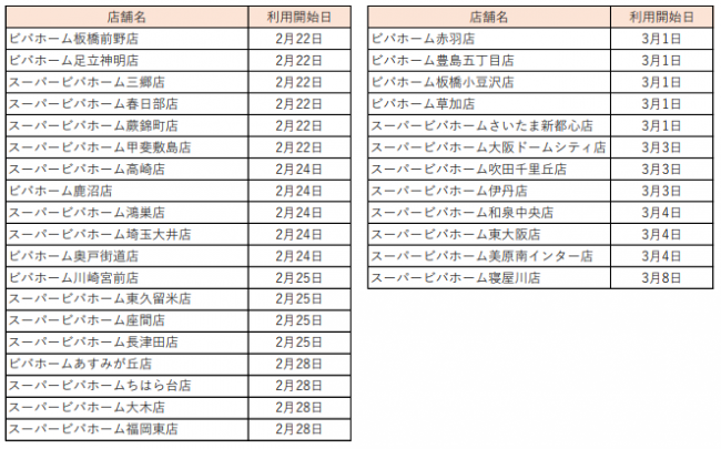 一部の店舗では、2月22日からすでにロッカーの運用が開始しており、3月8日の「スーパービバホーム寝屋川店」で31店舗への導入が完了した。