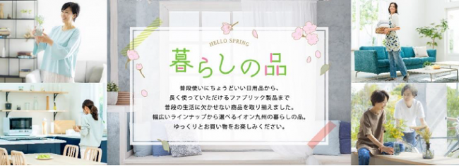 イオン九州(株)(福岡市博多区、柴田祐司社長)は 3月10日(木)、イオン九州の公式通販「イオン九州オンライン」内において、「暮らしの品」ショップをオープンする。