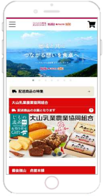 オンラインストアでは、同社が勧める「旬の特産品」や「地元の逸品」を随時品揃えし、注文された商品は産地から直送でお客に届ける。また、インターネットを使用しないお客にも商品を届けることができるように、中四国・兵庫エリアのマックスバリュ、マルナカの店頭での予約も実施している。
