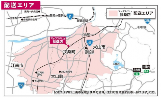 扶桑店を配送拠点とするネットスーパーは、愛知県江南市、扶桑町、大口町、犬山市(一部地域除く)を配送エリアとする。配送可能世帯数は約8万3000世帯。
