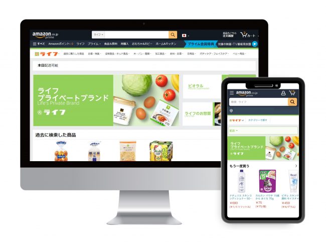 このサービスは、ライフの実店舗で取り扱っている野菜や果物、精肉、鮮魚をはじめ、「ライフプレミアム」や「スマイルライフ」といったライフのプライベートブランド商品や日用品など、数千点の商品をAmazon.co.jpのWebサイトやAmazonショッピングアプリで受注する。