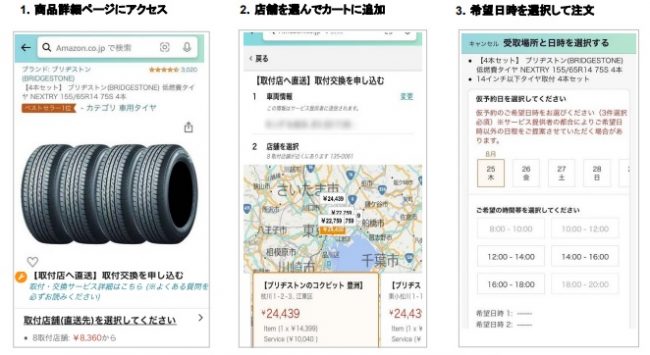同社サイトではタイヤなどの注文時、商品詳細ページで取り付け店舗や取り付け希望日時を同時申込できる「カー用品取付・交換サービス」を導入している。これまではタイヤやバッテリーが対象だったが、ドライブレコーダーが加わった。