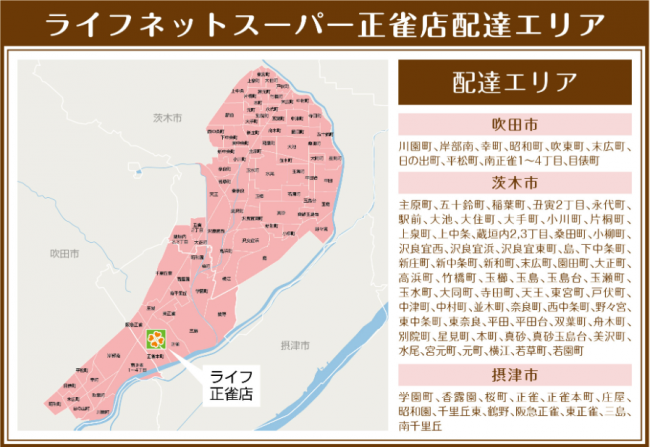 これまで近隣のライフから配送していたエリアに加え、吹田市や茨木市内の一部地域でも「ライフネットスーパー」が利用可能となった。