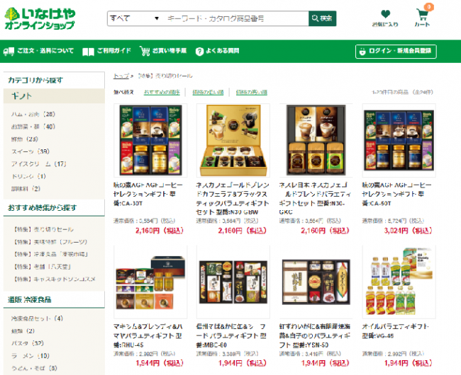 流通スーパーニュース > Eコマース > いなげやnews|「ギフト売り切りセール」実施/オンライン利用促進と在庫処分 いなげやnews|「ギフト売り切りセール」実施/オンライン利用促進と在庫処分 Eコマース / 2023年01月30日 ツイート (株)いなげや(東京都立川市、本杉吉員社長)は「ギフト売り切りセール」をオンラインショップで開始した。1月27日(金)に同社のサイトで発表した。 通常価格5724円の「味の素AGFコーヒーセレクション」が3024円、同じく4644円の「昭和産業バラエティオイルセット」を2494円の売価で、コーヒー、食用油、菓子、飲料などギフト用詰め合わせ24品を対象に最大65%引きで販売する。 ツイート