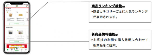 商品ランキング・新商品情報機能では、商品ランキング機能と新商品情報機能を新設した。お客の利用や購入状況に合わせて新商品を提案する。