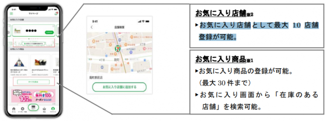 さらに「お気に入り店舗」と「お気に入り商品」機能を新設した。お気に入り店舗は最大10店舗、お気に入り商品は最大30件の登録が可能。自宅にいながら、欲しい商品の在庫状況をいつでも簡単に確認できる。