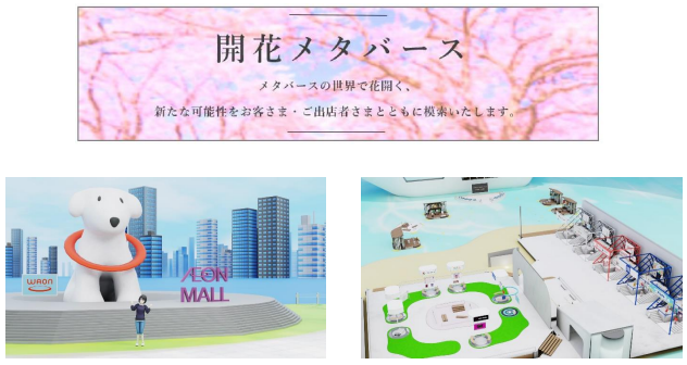 バーチャルストアは、リアルのイオンモールと同じように、メタバースの世界でも花を咲かせることを目指し、「開花」をコンセプトに出店する。多種多様な店舗でのショッピング、ゲームなどのエンターテインメント、さまざまなコンテンツを提供していく。