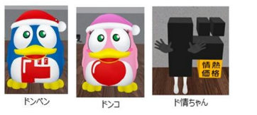 歩いたりダンスをしたり、3Dで動くドンペン・ドンコ・ド情ちゃんたちの姿が見られる。アバターとして一緒に写真撮影も可能だ。