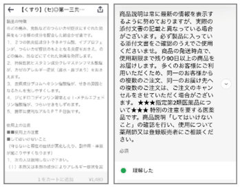 取り扱い商品は、風邪薬や目薬、胃腸薬など第2類医薬品と第3類医薬品の約60種類。専用アプリから取り扱い店舗と希望の医薬品を選択すると、必要な説明事項が表示され、確認ボタンのタッチで注文が可能。店舗では、医薬品のみ別の袋に入れ、登録販売者が確認の上、配達員に渡す。