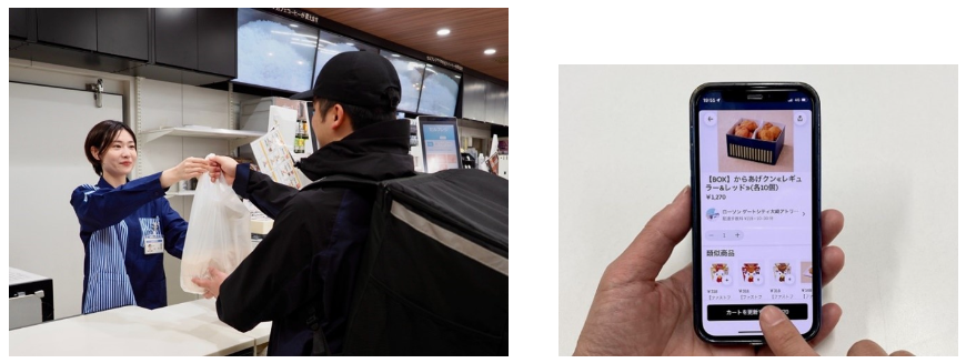 ローソンでは4月10日(水)から顧客の「Uber Eats」アプリと店頭在庫有無の自動連携機能を開始。これまで店舗スタッフが商品の在庫有無を確認して顧客のアプリへ反映して手作業の業務が、自動連携機能によって商品配達の精度が向上し、かつ在庫確認作業時間が9割軽減するなどの効果を上げている。