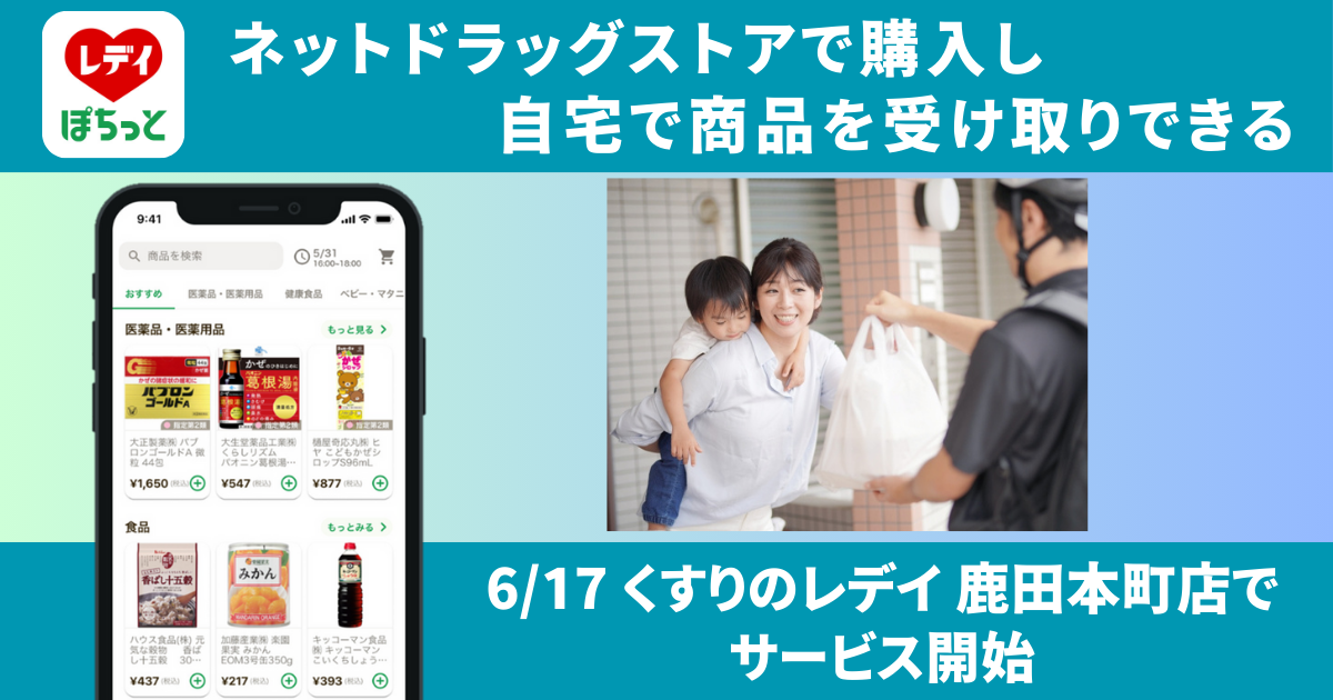 (株)レデイ薬局(愛媛県松山市、白石明生社長)は、ネットドラッグストア「レデイのぽちっとオーダー」アプリによる、OTC医薬品を含む商品を自宅まで即日で配送する新たなサービスを開始する。岡山市北区にある「くすりのレデイ鹿田本町店」で6月17日(月)から開始する。