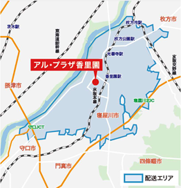 配達エリアは枚方市、寝屋川市、守口市の一部地域。