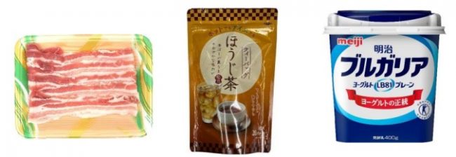 セール商品の一例として、「佐賀県産SPF豚バラスライス 約150g」や「マルキョウ ほうじ茶ティーバック 5g×20P」が40%OFF、「明治ブルガリアヨーグルトLB81プレーン 400g」が30%OFFで提供される。