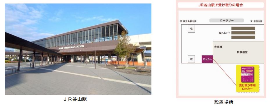 JR谷山駅の「受け取り専用ロッカー」の受注対応店舗は「イオン鹿児島店」。11:00までの注文で、当日15:00以降の受け取りが可能となる。