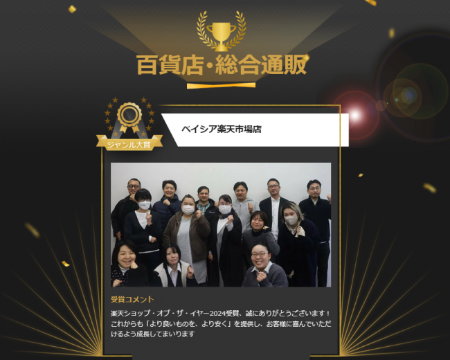 ベイシアnews|楽天ショップ・オブ・ザ・イヤー2024「百貨店・総合通販」で大賞