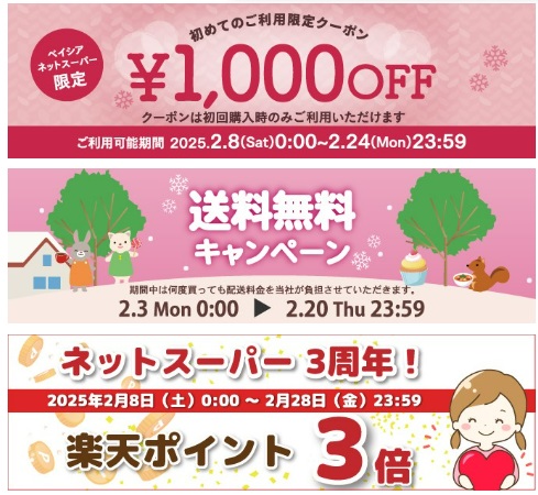 現在「ベイシアネットスーパー」では3つのキャンペーンを実施している。