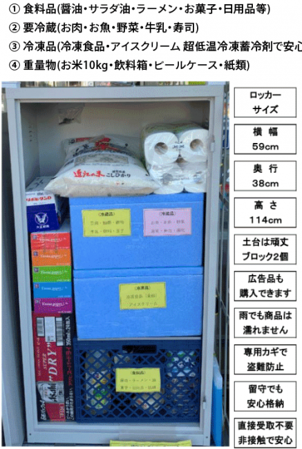 毎日注文・毎日配送が可能。また置き配用の「専用ロッカー」または「専用カバー」を設置するため、注文商品を受け取るため待ち時間がない。当日9時までの注文で、17時までに商品を配送する。