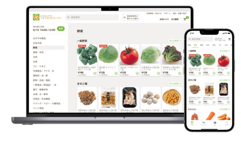 「ライフネットスーパー」はパソコンやスマートフォンから注文された商品を近隣店舗から配送し、自宅へ納品するサービス。