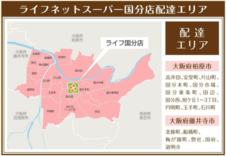 配送エリアは大阪府柏原市および藤井寺市の一部。