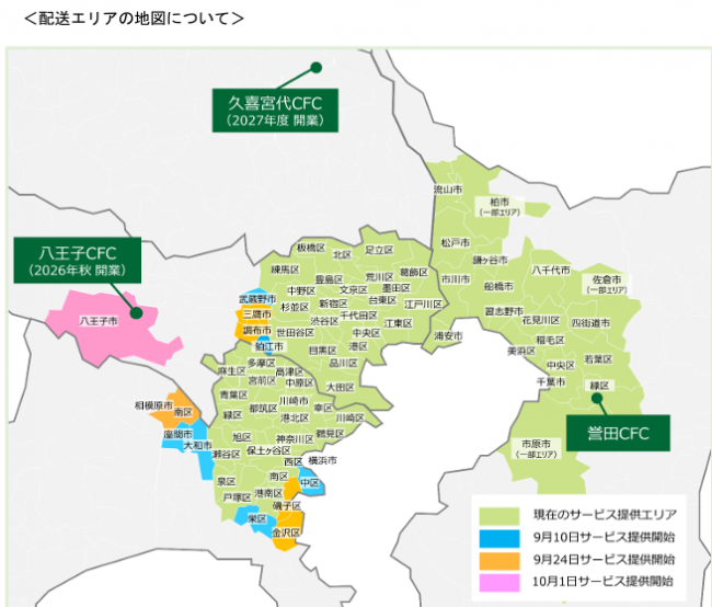 特に八王子市は2026年に最先端のAIおよびロボティクス機能を導入した顧客フルフィルメントセンター(CFC)の開設を予定している。今後のサービス拡大において、より迅速かつ安定した配送を実現するための重要な拠点と位置づけている。