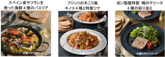 9月29日(金)~10月18日(月・祝)の1期では、「スペイン産サフランを使った海鮮4種のパエリア」(2030円)「フジッリの木こり風キノコ4種と特製ツナ」(1706円)「紀ノ國屋特製鴨のテリーヌ4種の彩り添え」(1598円)を展開する。