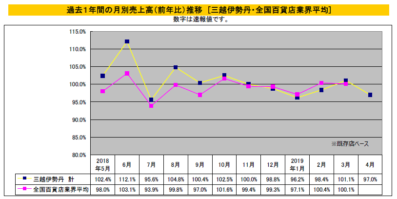 三越伊勢丹news|4月国内百貨店2.8%減/寒暖差激しく初夏物伸び悩み