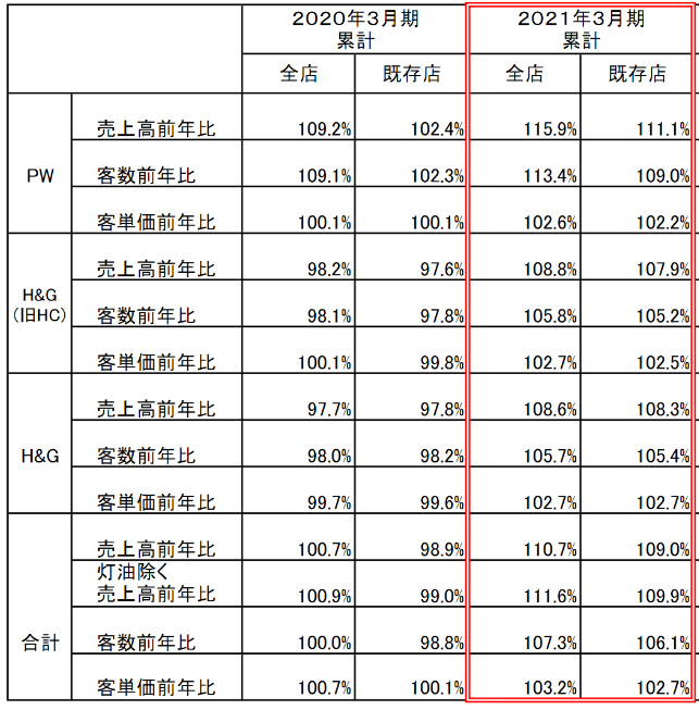 パワーを10店、ハード&グリーン(旧HC)を12店、プロを3店の計25店舗を新規出店した。業態転換、ビルド&スクラップに伴い、ハード&グリーンを14店舗閉鎖している。3月末の店舗数は、パワー76店、ハード&グリーン1118店、プロ6店、アテーナ8店の1208店舗。