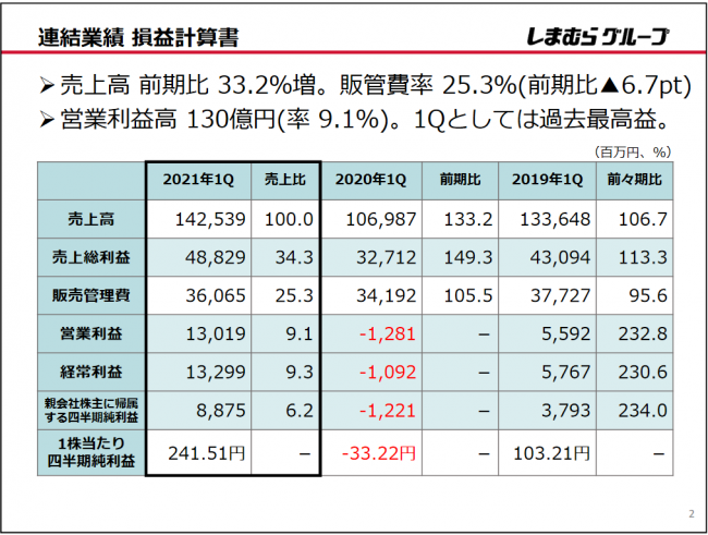 しまむらnews|第1Q売上高1426億円・営業利益は130億円は過去最高益