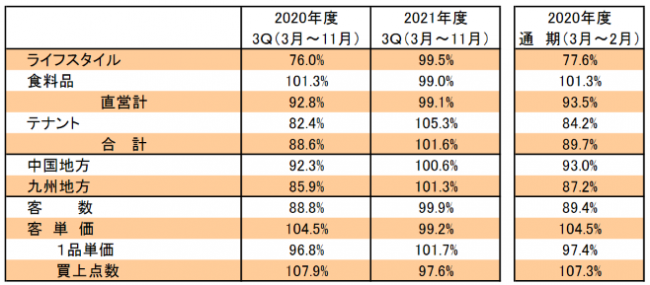 ※2021年3月に衣料品部と住居関連品部を統合・再編し、ライフスタイル本部とする組織変更を行っている。これに伴い、2020年度3Q及び2020年度通期の実績については、組織変更後の数値に組み替えている。