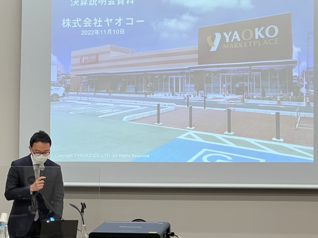 9月末時点の店舗数はヤオコー180店舗、エイヴイ13店舗、フーコット3店舗のグループ全体で196店舗。下期はヤオコーが3店舗の新店を計画する。