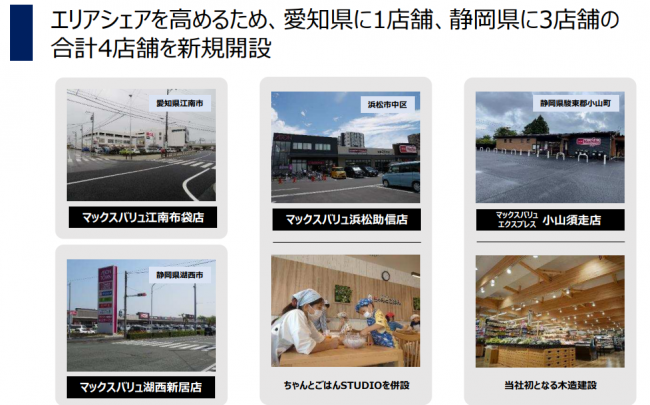 店舗面では、4月に2店舗、7月にマックスバリュエクスプレス小山須走店(静岡県駿東郡小山町)を新規開設、マックスバリュ浜松助信店(浜松市中区)をスクラップ&ビルドにより開設した。
