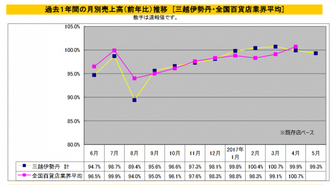 (株)三越伊勢丹ホールディングスは、5月度の売上げ速報を発表した。