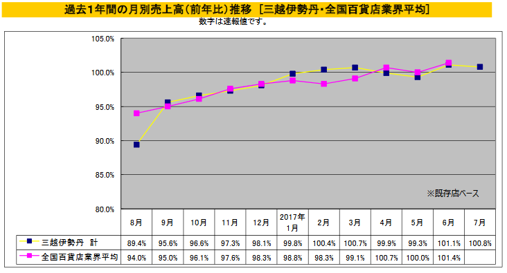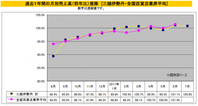 (株)三越伊勢丹ホールディングスが、7月度国内百貨店事業の売上速報を発表した。