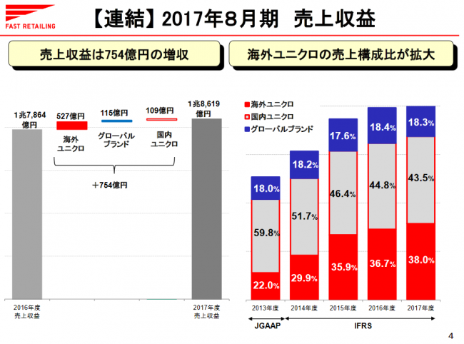 (株)ファーストリテイリング(山口市、柳井正社長)の2017年8月期の連結業績は過去最高の業績となった。