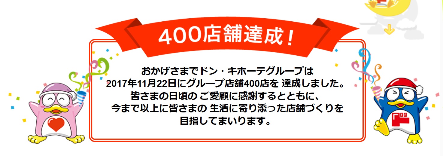 海外事業も積極的だ。2017年9月に米国ハワイ州でスーパーマーケットを展開するQSI,Inc.の株式取得を行い、新たに24店舗がグループに加わった。「タイムズ・スーパーマーケット」を中心にしたチェーンである。また、DONDONDONKI(ドンドンドンキ)オーチャードセントラル店をシンガポール共和国に開店し、海外店舗は38店舗となった。