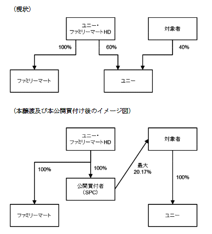 その一方で、ユニー・ファミリーマートは子会社のユニー(株)の全株式を、10月11日付けで、ドンキホーテHDに譲渡する契約を締結した。これによって、ユニーはドンキホーテHDの完全子会社となる。