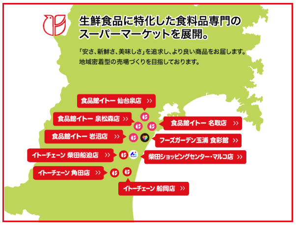 一方、伊藤チェーンは、1958年8月の創業以来、宮城県仙南地方を中心に地域に密着した食品スーパーマーケット事業を、子会社(株)マルコの1店舗とあわせ合計9店舗を展開している。